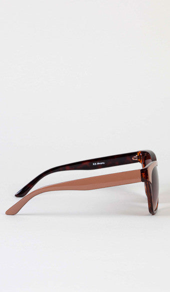 Uber-chic cat eye shades in tortoise shell edged in a rich sand color. Brown tinted lenses. UV protection.