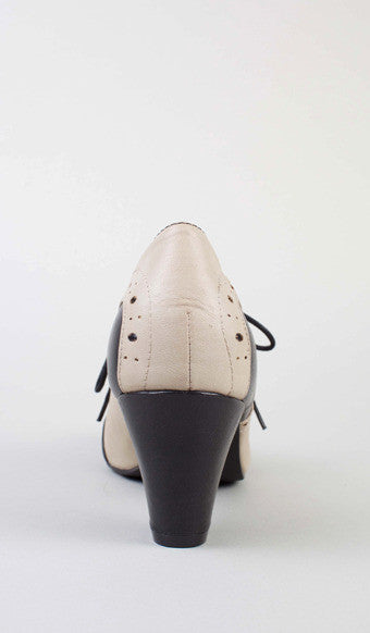 Lace-up oxfords featuring brogue trim and two-toned faux leather.