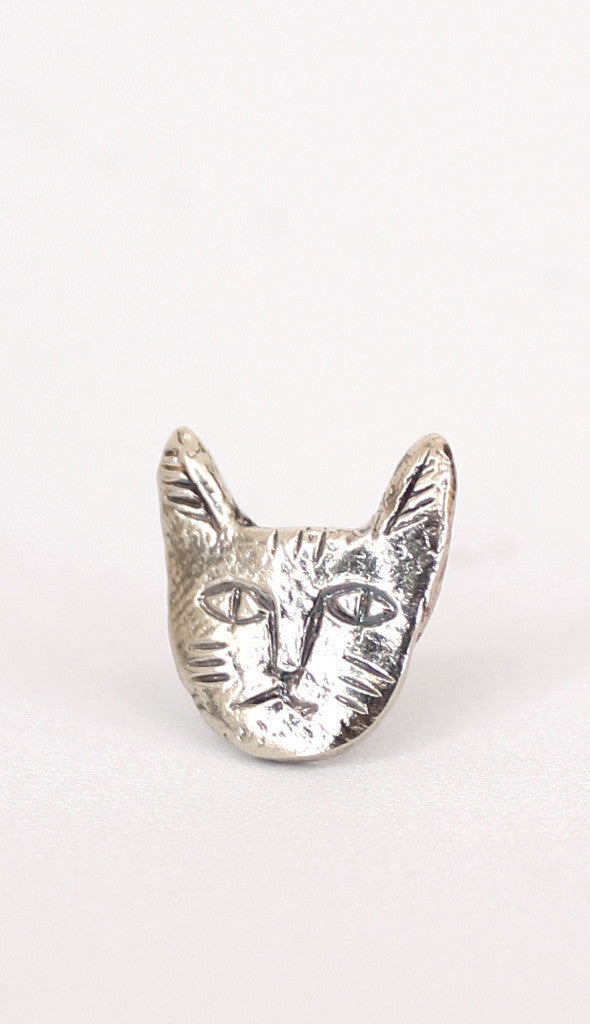 Adorable lapel pin of a cat's face cast from hand carved wax designed by Datter. Wear it on your collar for a sweet accent, or gift it to your favorite cat lady!