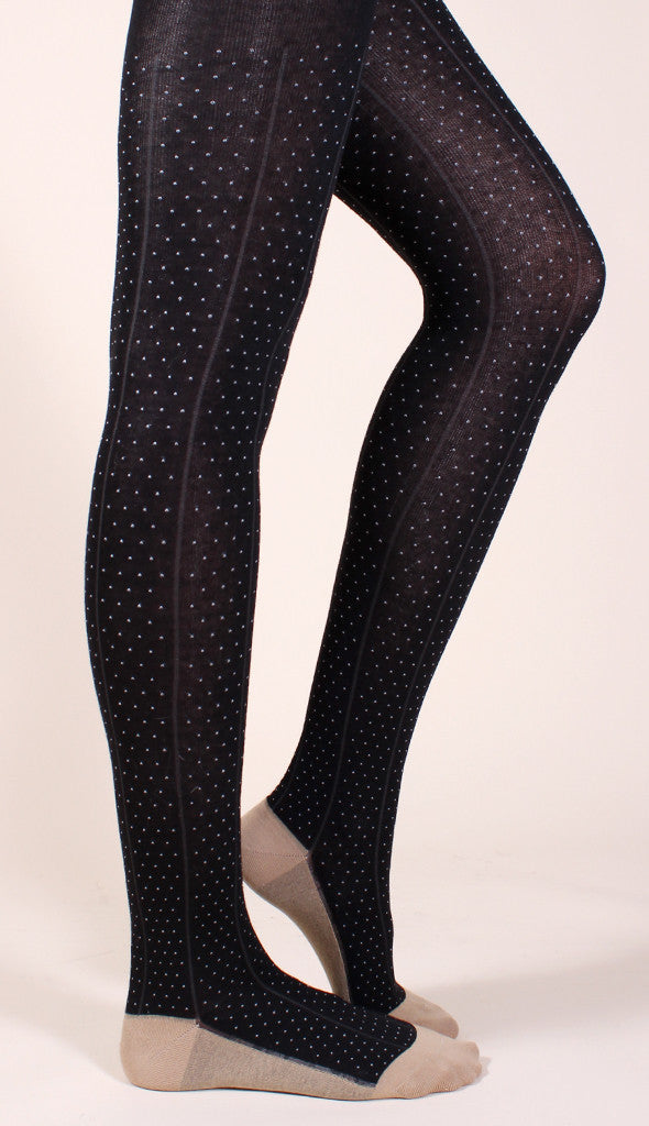 Hansel from BaselThese thick black tights from Hansel and Basel feature a subtle polka dot and stripe pattern to lend a little something extra to your fall look.