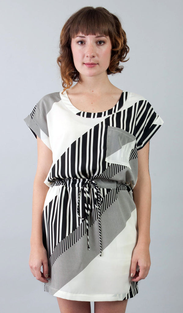 Collective ConceptsStriped dress by Collective Concepts. Features drawstring waist and front pocket at left breast. Loose fit, fits true to size.