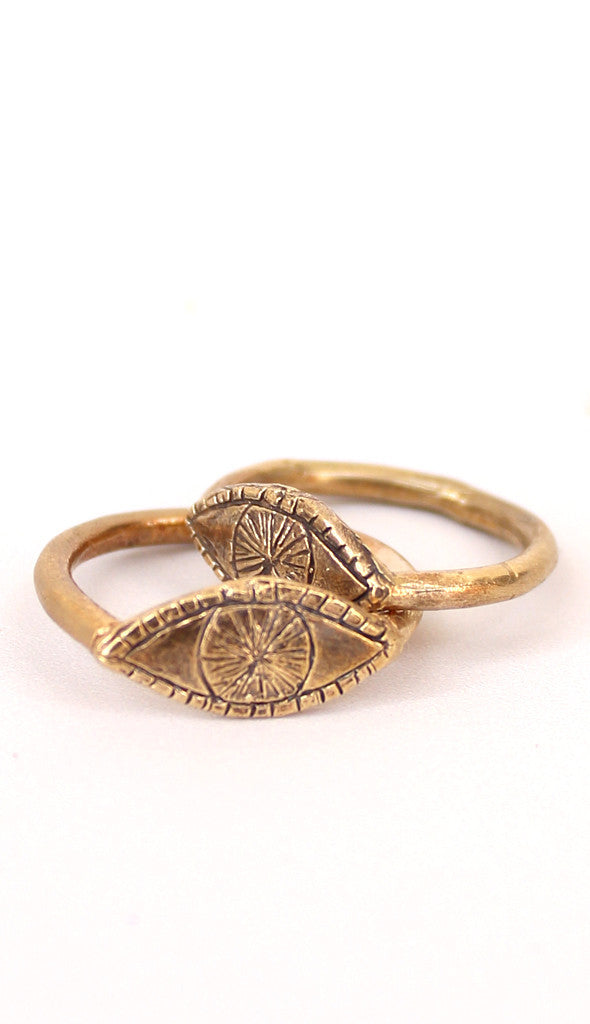 DatterA dainty brass eye ring cast from hand carved wax by Datter. Eye sits flat on the top of your finger with a round band. Gold-toned brass.
