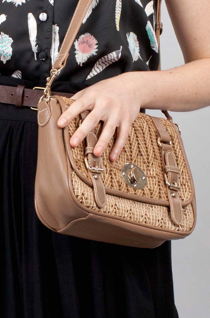 Woven Bag Melie Bianco Super cute bag in a tan faux leather with woven detail at front. Removable strap, gold hardware. Quantity $12.00 $64.00 Checkout Size Chart / Ask Us / Back to Shopping
